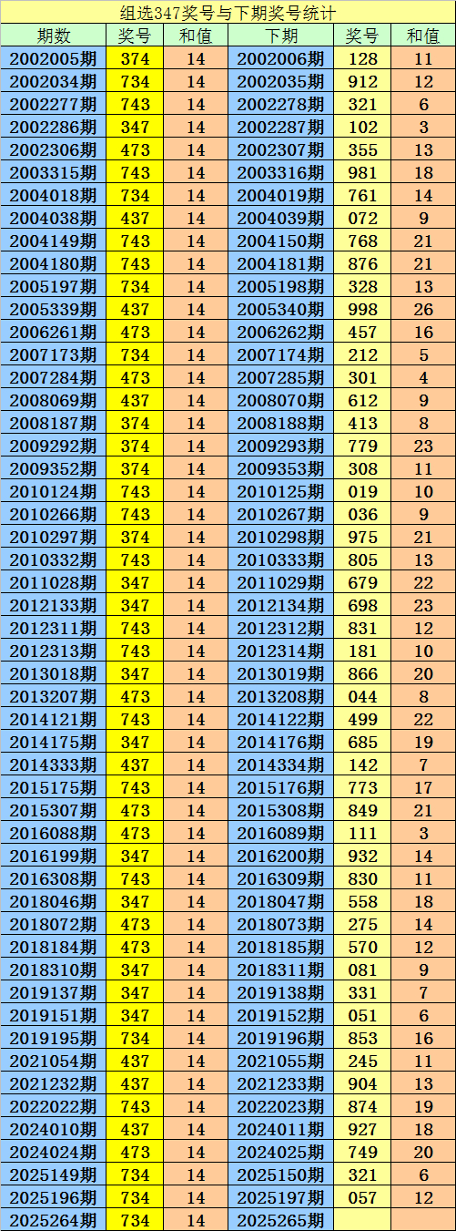 第2025264期3D奖号组选为:347,历史上该号码组选出现52次,下期号码分别为:128、912、321、102、355、981、761、072、768、876、328、998、457、212、301、612、413、779、308、019、036、975、805、679、698、831、181、866、044、499、685、142、773、849、111、932、830、558、275、570、081、331、051、853、245、904、874、927、749、321、057。