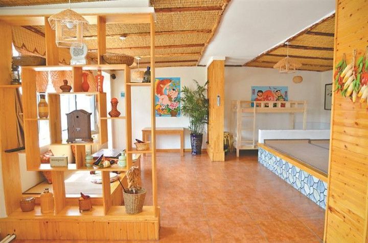 走进汤原县汤原镇北靠山村的民宿——村长小院,室内的火炕、草席天棚、老式炕柜映入眼帘;炕上铺的手工大红、大绿花被褥,墙上粉刷的描绘乡土生活娱乐的水粉画,让人仿佛回到了上世纪六七十年代的老东北。