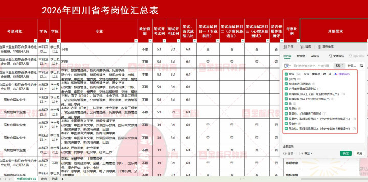 以广东省2026 年度省考为例,县级以上机关设一级主任科员岗1904个,共计招录4855人,而4级主任科员及一级科员共设252个岗位,合计招录516人;此外,在乡镇机关,部分岗位明确限制性别或加试少数民族口语。